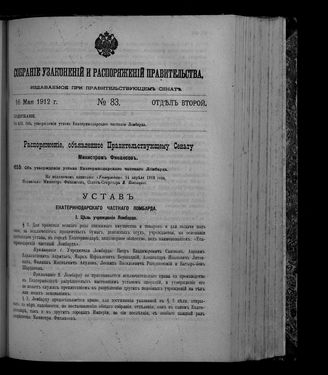 Собрание узаконений и распоряжений правительства, издаваемое при Правительствующем сенате. 1912. № 83. 16 мая